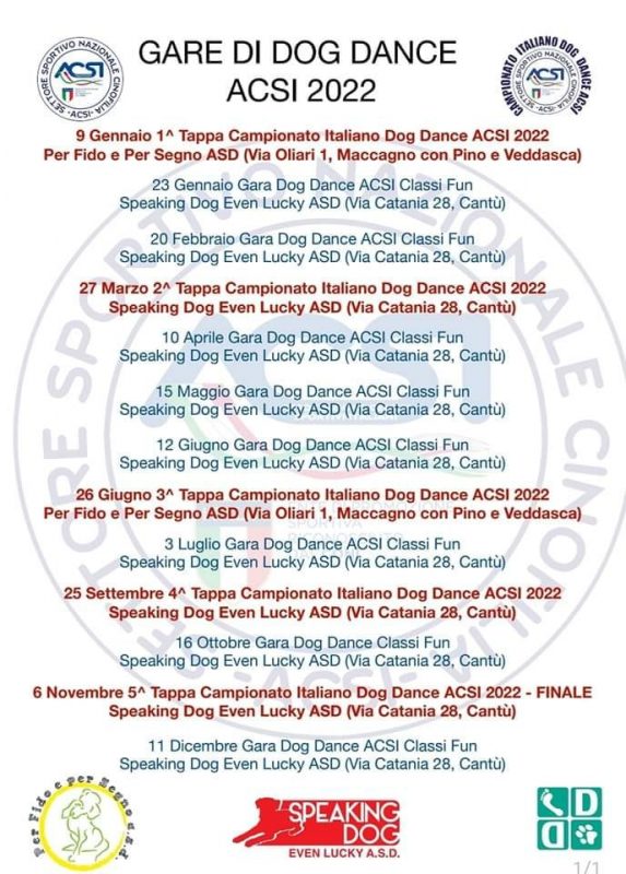 Calendario Gare in programma